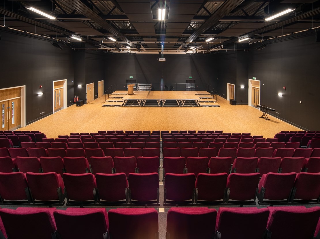 We are blessed with a first-class Concert Hall with teared seating for 404, 3G pitch, MUGA, 4 court Sports Hall, Dance Studio, Drama Studio, Atrium and a large Conference Room.